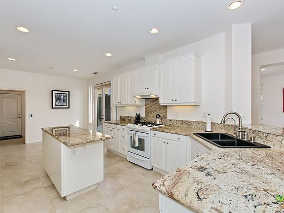 Welcome HOME to the exclusive Four Seasons 55+ Gated Community in Palm Springs, CA. The stunning highly sought after Canyon Four Model Home is 2,632 sq.ft. 4 bedroom 3 bath and just steps away for the well-appointed clubhouse. The spacious light filled home features a private inner patio covered courtyard with detached casita and bath, large kitchen with granite counter tops, double French doors that open to the courtyard or private back yard with breathtaking mountain views. Upgraded tile floors throughout the living room with bar area, den, kitchen, walk-in pantry, baths and hallways. Large master bedroom and bath features double walk-in closet. Separate laundry room. Beautiful desert landscape surrounds the property. The homes boasts Solar Panels that were installed in 2015, where the assumable low monthly payment of $160 provides for very low electric bills. The solar equipment may be bought out. Buyer to verify square footage.