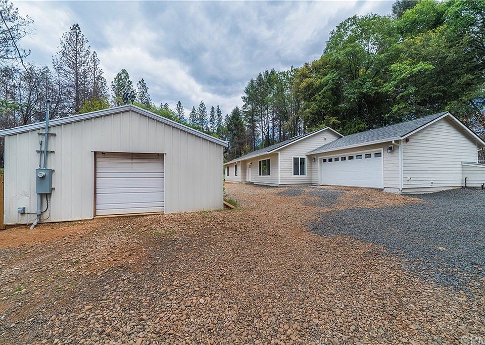 Nestled down the street surrounded by mature trees you're welcomed to this brand new construction with its OWN WELL. This home sits on a half acre parcel right next to an acre and a half which gives it even more privacy. The new home features granite counters in the kitchen, appliances, Shaker Knotty Alder cabinetry, pantry, island with eating bar overlooking the large family room. Many windows throughout make the home light and bright. Master suite features walk in closet, plenty of light and bathroom with standing shower with glass door. Home has bullnose corners, brushed nickel lighting and hardware, can lighting, skylight in family room, hardwood laminate flooring throughout, security system, new 1500 gal septic tank, privacy wall, fruit orchard, dog run, attached 2 car garage and separate 800 sq ft insulated shop. This was untouched by the fire and was just completed in April. You don't want to miss out on this unique home.