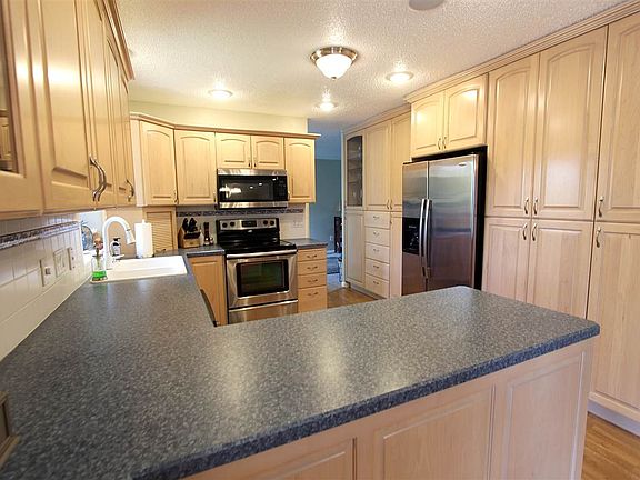 Custom built home with huge wood working shop and many extras! This two story home has lots of living space w 3 bedrooms, 3.5 baths in the house, an enclosed sun room w beautiful view, and recently redone kitchen w gorgeous cabinets. The back yard has a fountain and wonderful landscaping throughout the property. Entering the front door there is a foyer w a closet and door to the double attached garage. The garage boosts lots of storage and many cabinets custom built by the owner. The large kitchen is tastefully done, located between the formal dining room and the large open family room fireplace. There is an eating area between kitchen and family room, w access to a large all-season room full of windows w beautiful view. Nice formal living area off the kitchen open to formal dining room, short distance from a half bath in foyer area. Upstairs there is a master suite w extra large walk in closet, and a full bath. Two more bedrooms upstairs and another full bath w laundry. The lower walk-out basement has a family room w wet bar and fireplace, an office, full bath and mechanical room. Large patio off the lower family room. There is a single storage garage, and a huge 63x40 shop that is unbelievable. Storage, equipment, and an office and half bath. Upstairs in the shop building is a large room used as a sewing room that could be used as guest quarters. Attached garage area and tons of storage! One of a kind property! Check out the virtual tour!