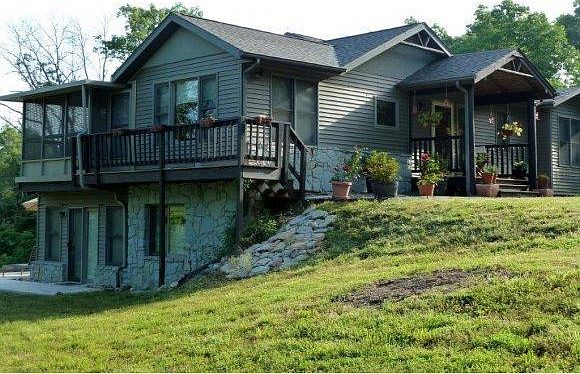 Contemporary country living! Privacy galore on 20+ acres, with a good view of the James River. Beautiful hardwood floors, tongue and groove cathedral ceiling, huge kitchen with center island. Open floor plan with big windows and great views, 2BR/2BA, and sunroom also on the main level. Great room on the lower level has a 35,000btu Napoleon wood-burning stove, office, and additional bedroom. Lots of storage and tons of features (see sheet) like a whole house propane generator. Attractive landscaping with an 1100(+) sq ft travertine patio.