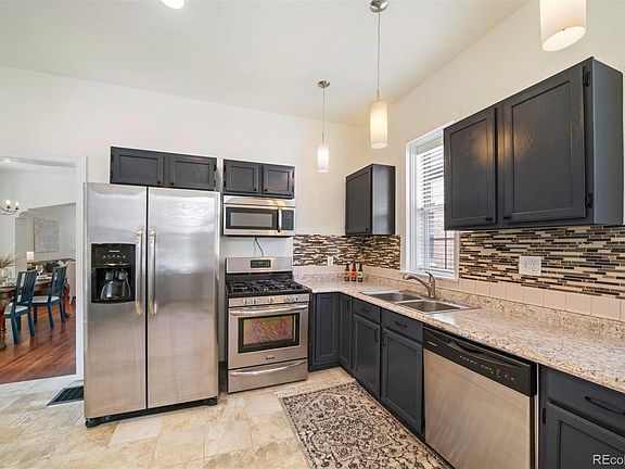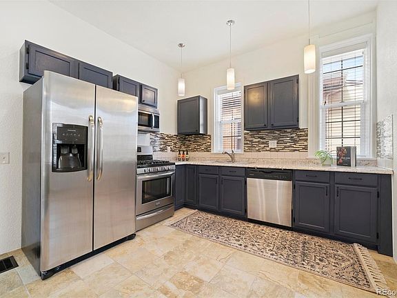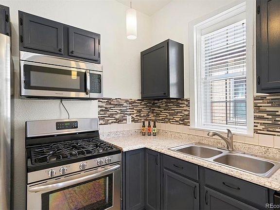 Packed with as much character as it has charm, this home has been updated to blend historic details with modern functionality and style. The main level features high ceilings, an open living room, a sizable dining room, a bedroom, and a 3/4 bath. Notable features include refinished oak hardwood floors throughout and a spacious, remodeled kitchen with high-end stainless-steel appliances and custom tile backsplash. Upstairs, a private master suite with an en suite bath and two closets offers amazing storage potential. In the home's basement you'll find another living space/rec room and a third (non-conforming) bedroom plus storage and utilities. The current owners have completed several updates, making this home truly turn-key including fresh interior and exterior paint, new light fixtures, new door hardware, and new HVAC. The fenced-in backyard offers a great space for entertaining with a raised deck and established landscaping. Don't miss the views of downtown from the backyard, a great space to see Rockies' fireworks and create your outdoor cinema! The detached 2-car garage has ample room for parking and storage. Ideally located on a quiet block, this home is just a short walk to some of the best restaurants and bars in Sunnyside, the Highlands, and LoHi!