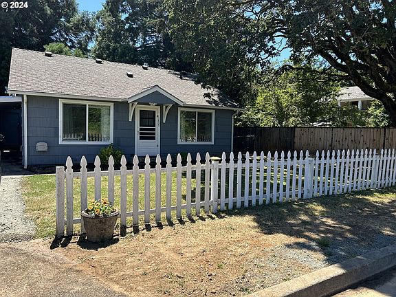 This sweet 1947 cottage is a perfect combination of original charm and modern updates. Two bedrooms and one bath with a spacious living area. The fully updated kitchen has a small dining area, good storage and an indoor laundry room with shelving. Solid wood doors, original wood flooring under the current floor coverings, built in cabinets and screen doors front and back provide that 40's feel. Complete with a white picket fence in the front and fenced back yard, there is plenty of outdoor living space. The driveway and carport offer ample parking and the sizable storage shed with shelving will hold your tools & more . Located close to schools and walkable to the shops and restaurants of downtown. See this one soon!