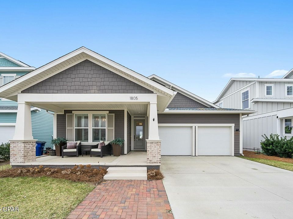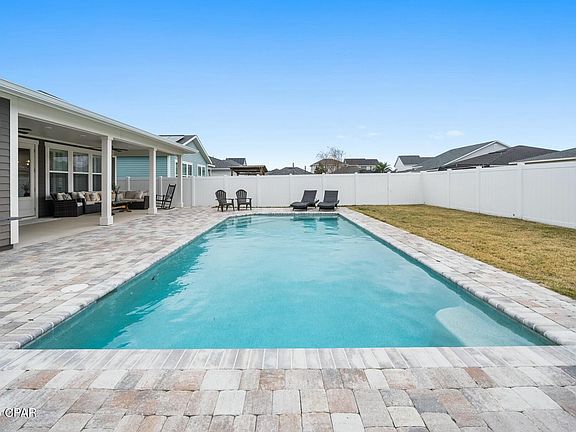 Welcome to this incredible home in the MOST desirable waterfront Community in Bay County...SweetBay! This home is equipped with a heated pool, white cabinetry, tile floor that resembles hardwood flooring, upgraded light fixtures, upgraded hardware, plantation shutters throughout the home, exterior gutters and pavers in the backyard! It has a tub in the master bathroom equipped with a double vanity sink and shower. When walking in from your attached garage, you can hang your purse or your children's backpacks on the built in hooks when you walk in the door. Once you enter into the living room you are greeted with a gorgeous built in fireplace surrounded with built in custom shelving in your family room. This home is a MUST-SEE for anyone looking! This home is a great investment within SweetBay with its upgrades and own private pool. The Neighborhood is home to a fantastic school and has future plans of a marina, Publix, restaurants and retail space coming soon!