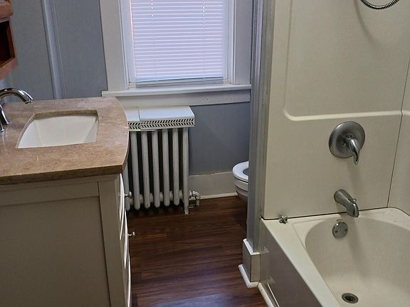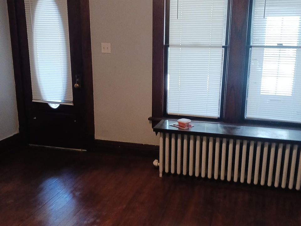 Hardwood floors, off street parking, coin op laundry in basement, hot water boiler heat, neat and clean, quiet building Tenant pays for own gas and electric, month to month lease, no smoking, no pets, coin op laundry in basement. Hot water boiler heat. four unit quiet building. First months, Last months plus security to move in.