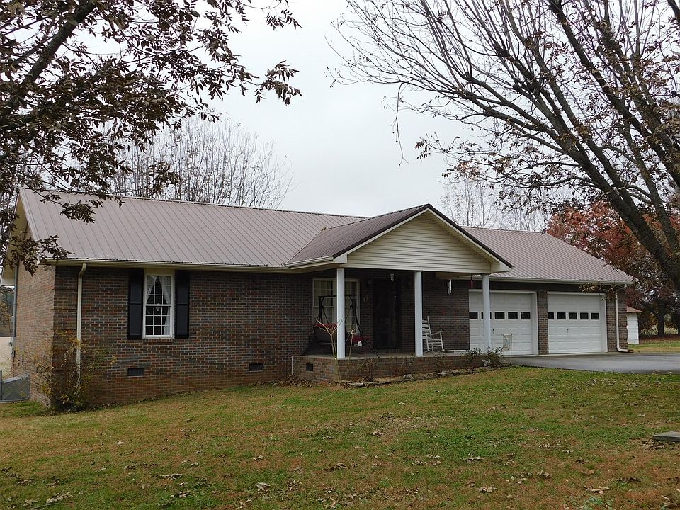 Well built brick home in beautiful country setting just minutes from Tims Ford Dam in the Harmony area. This 2 bdrm/1BA open floor plan features an oversize concrete drive with a large 2 car garage with workshop at back. All appliances including washer/dryer and 2 storage buildings STAY!