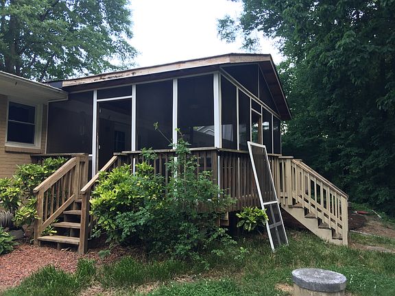 Price reduced to reflect age of HVAC (works fine), 4 bedroom, 3 full baths, open living/dining/kitchen in center with split bedroom plan, large breakfast bar. All new carpeting in BRs, all new interior paints, recent roof & vinyl windows, new stain on decking, HUGE screened porch on rear w/vaulted ceiling/recessed lighting/ceiling fan, open deck w/hot tub, LARGE 2 story wired storage building/workshop & small storage bldg, mature landscaping w/rose bushes, beautiful trees. Recent septic line replacement