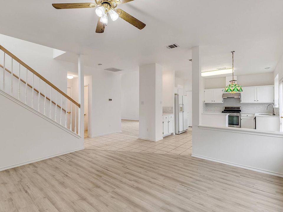 Freshly painted most rooms. Newly painted white kitchen cabinets. New waterproof vinyl plank floor in all rooms. No carpets. New quartz countertop in kitchen and master bathroom. Large game room upstairs with closet. Sprinkler system. White refrigerator included. $25 pet rent/pet. $300 pet deposit/pet.