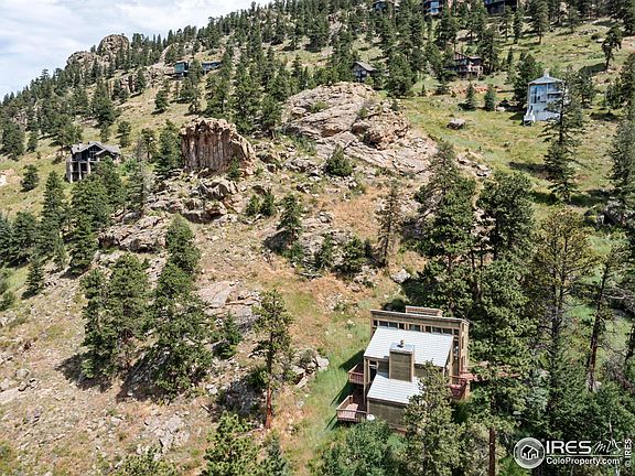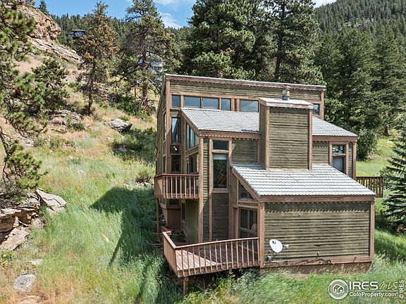 Great opportunity to own property in Windcliff Estates...known for it's outstanding mountain views and tucked away peaceful living yet close to Estes Park and Rocky Mountain National Park and all that this popular mountain area has to offer! 3 bedrooms and 2.5 bathrooms, this unique home was designed by award winning architect Roger Thorp. The open concept welcomes you with a spacious Great Room of vaulted ceilings and wood beam accents, floor to ceiling windows to frame the mountains and the beautiful treed surroundings and wood burning fireplace. Dining room opens to 1 of 3 balconies with mountain views of The Continental Divide. Also on the main level is the kitchen, one bedroom, 1/2 bath and large laundry room. Upper level is airy and bright and has 15 x 10 loft with built in desk and storage plus 1 large bedroom en suite with full bathroom. Walk out lower level has additional rec space with family room that opens to the 3rd deck with those amazing views plus bedroom 3 of 3 and 3/4 bathroom. Enjoy the private 1.33 acre full of mature pines and rock outcroppings. Offered fully furnished making this an ideal full time residence or part time getaway. Call today for your private tour of this must see mountain home! House is being sold as is.