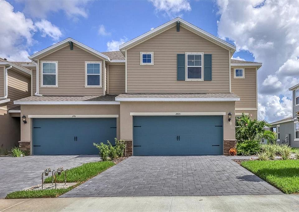 One or more photo(s) has been virtually staged. From the time you enter the gates at Woodleaf Hammock, you know you are somewhere special. This townhome is practically new, completed in 2021, you can still smell the fresh paint. One of Meritage's largest floor plans in the community with 3 beds and 2-1/2 baths, not to mention a large bonus room to use as a playroom, TV media center, or office. A perfect location on the pond showcases the view from the screened lanai where morning coffee or evening wine is enjoyed. Community features include pool, pickleball, playground, and dog park. This home is move in ready, so schedule your appointment today.