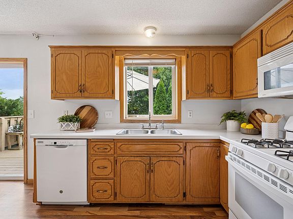 Welcome to this well-kept home in the quiet Country Crossing neighborhood of Elk River. Offering 4 bedrooms, 2 bathrooms, and a 3-car garage, this property combines comfort and function with a thoughtful layout. Set on a peaceful 0.32-acre lot, this home invites you to enjoy outdoor living with a spacious deck, fenced-in yard, and garden space, plus a private patio just outside the walkout lower level. Inside, natural light pours into the main family room through a large bay window, creating a warm and welcoming atmosphere. Thoughtful updates include fresh flooring on the upper level, new carpet on the