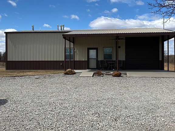 Summer is approaching quickly which means this country home is just what you need to get outdoors with your family! Stunning 5 acres featuring a 30x50', 2 Bedroom, 1 bath luxury barndominium! This offering features both modern amenities and western comfort, there have been no corners cut on this beautiful home! The open floor plan allows the perfect space to gather with friends and family. From granite countertops, wood flooring throughout, maple cabinets, stainless steel appliances, water softener, Rinnai tankless water heater, and reverse osmosis system for this hard Oklahoma water. This home offers everything you need to feel right at home. With immaculate tile flooring in the bathrooms and a 61" Callaway Claw Foot Tub you're never going to want to leave home! The 10x10 garage door that is fully insulated with a Bluetooth garage door opener - bonus feature! The garage is heated and cooled so it could easily be converted into another master bedroom and bath! The property also features a 20x40 carport perfect for RV, finish the sides and have the perfect shop, already has electric and plumbed for a bathroom right into the DEQ septic system. With a pond for summertime fishing, mature trees, and a huge yard, this property is the perfect place to grab a drink, relax and enjoy the gorgeous views of your future home. Call or text today!