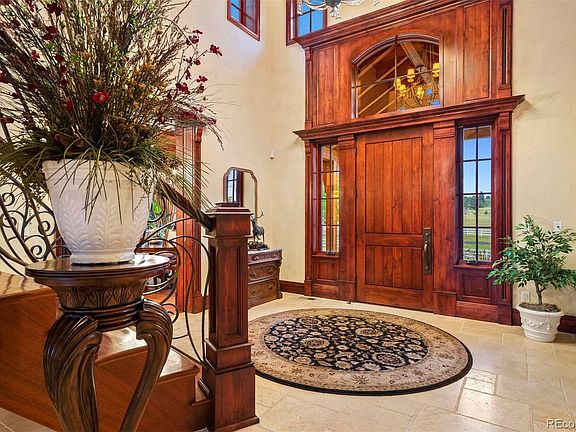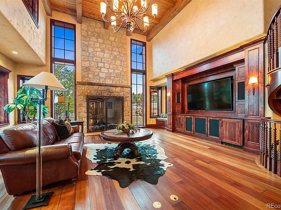 Experience extraordinary craftsmanship and the highest quality appointments in this magnificent log custom estate. Situated on 2.4 acres with endless mountain views, the home evokes rustic western grandeur with a beautiful pine beetle log exterior and a sprawling covered porch that spans the entire front of the home. Built in 2014 by architect Robert Walker, this 10,022 square foot estate brings the outdoors in with volume of spaces, over 100 expansive windows; views from every room, and the perfect use of stone, granite and rich woods to create a warm, inviting interior. No expense was spared in building this architectural masterpiece. Old world design elements compliment every room with 7" Brazilian cherry flooring, wide cherry wood baseboards, Knotty Alder custom built-ins and trim, Mahogany cabinets, Aspen wood vaulted ceilings, pocket doors, custom textured walls and travertine flooring. The home was designed for entertaining on a grand scale. A richly appointed kitchen with dual islands, enormous butler's pantry, Thermador appliances, 2-dishwashers, and a steam oven! The two-table designed dining room seats up to 20 guests. The epitome of luxury, the home boasts fantastic amenities. Enjoy working out in the fully equipped Pilates studio with steam shower. Relax with the family in the state of the art home theater. You will love the convenience of having your own pet shower! A unique feature of the home is a light-filled enclosed walkway off of the kitchen that leads to a detached 2+ car garage with a finished upper level. Unlimited options can be found in this 1100 square foot loft space, which offers both heat and electricity. Other noteworthy luxuries worth mentioning are: a sound system on the main floor, 6 zone heating/cooling system, 2 laundry rooms, 2 water wells, 2 septic tanks, and a Crestron Home Automation System. This unparalleled unique home is your reprieve from the daily hustle and bustle. View the property video under the movie wheel!
