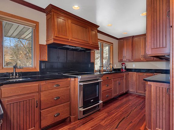 This captivating Rice Lake home offers lakeside sunsets. Situated on a 1.64-acre lot, this property ensures ample space for both seclusion and enjoyment with room to add an addl. storage building. The craftsmanship is evident in every detail. Large windows spanning across three floors flood the interior with natural light, offering picturesque views from every floor. A seamless blend of modern luxury and rustic charm. Exquisite woodwork including Tigerwood floors, adds warmth and character to the living spaces. Main floor features an open-concept layout. The loft area is a versatile space to suit your needs. Outside, the gently sloping terrain provides easy access to the sandy beach area. This waterfront oasis will create lasting memories with family and friends, Exceptional lake home offers a rare opportunity to embrace the beauty of nature and the comforts of home in perfect harmony. Don't miss your chance to make this slice of paradise your own. Schedule your private showing today!