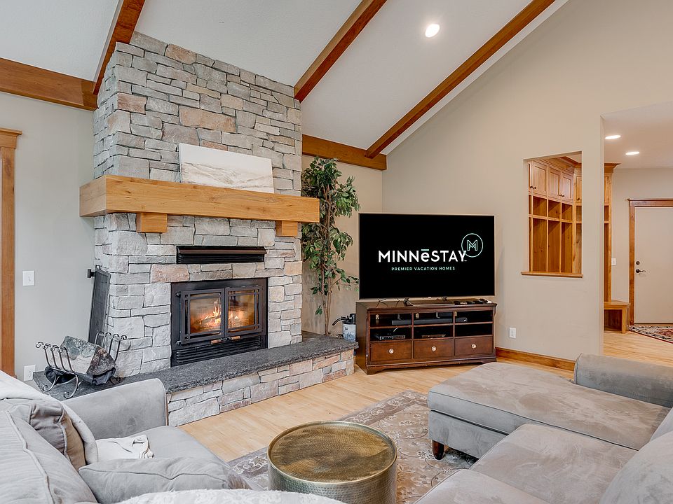Welcome to Woodhaven Retreat! Pool Table and Wet Bar! Relax in comfort in this immaculate serene countryside charmer nestled on 5-acres of wooded wonderland. This spacious 4-bedroom, 3.5-bathroom home features multiple living spaces creating a unique flow making the home an entertainer's dream. Beautifully designed to host family gatherings, wedding parties, or fun weekend get-away. -- THE PROPERTY -- Free WiFi | In-Home Laundry l Pool Table l Wet Bar Master Bedroom: King Bed with en suite bathroom | Bedroom 2: Queen Bed | Bedroom 3: Queen Bed | Bedroom 4: Queen Bed INDOOR LIVING: 3 fireplaces, flat-screen TV's throughout home, downstairs entertainment room w/wet bar, board games/puzzles for all ages, and pool table. Downstairs TV is for DVD only. KITCHEN: Fully equipped, family-style dining table, full knife set, stainless steel appliances, drip pot AND Keurig OUTDOOR EXPERIENCE: Furnished deck, gas grill, lounging area with firepit, basketball hoop GENERAL: Fresh linens and towels, washer/dryer, complimentary toiletries **Please note that the pole barn next to the home has tenants living there and may experience a brief moment of owner activity on premises. This activity is very brief and not a regular occurrence.** PARKING: Driveway accommodates up to 6 cars Owner pays all utilities. 1 Pet allowed. Renting Jan through May only. Cleaning fee at departure is set to $375. Excessive cleaning will be billed at $45 an hour