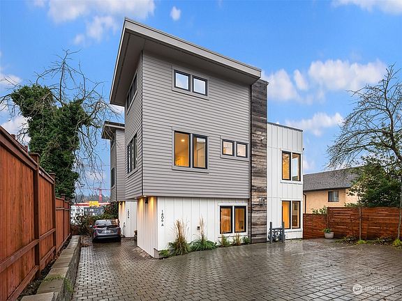 Solid oak floors, vintage barnwood siding and marble bathroom floors typify the upgraded materials and attention to detail in this gracious home. High ceilings and oak paneling provide the perfect backdrop for hosting or curling up in front of the fire. The deluxe kitchen will satisfy any aspiring chef. One level up you'll find two bedrooms with great light and privacy. The laundry room has a full sized washer and dryer. Up one more level is the roof-top deck with views of Mt. Rainier and an ensuite bathroom/study/office (accessible by private ext. staircase.) Secure parking next to the home and an abundance of shopping and restaurants that offer the best of the Northwest. Easy access to I-5, I-90, the International District and Downtown.