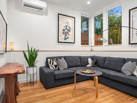 Solid oak floors, vintage barnwood siding and marble bathroom floors typify the upgraded materials and attention to detail in this gracious home. High ceilings and oak paneling provide the perfect backdrop for hosting or curling up in front of the fire. The deluxe kitchen will satisfy any aspiring chef. One level up you'll find two bedrooms with great light and privacy. The laundry room has a full sized washer and dryer. Up one more level is the roof-top deck with views of Mt. Rainier and an ensuite bathroom/study/office. Secure, off-street parking next to the home and an abundance of shopping and restaurants that offer the best of the Northwest. Easy access to I-5, I-90, the International District and Downtown.