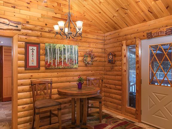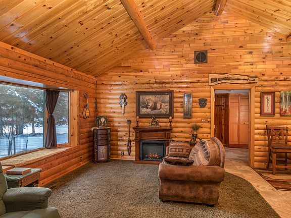 Honey, stop the car! What a great log home! You will love the fully updated (roof, furnace,floors, and more) clean, home with finished basement, all the extra storage, covered deck, fenced yard, 2 garages, move-in ready, in-town location on .44 acre lot with city sewer and water. Pride of ownership & room for expanding. Check this one out today! Some furniture stays. Room for 2 more bedrooms