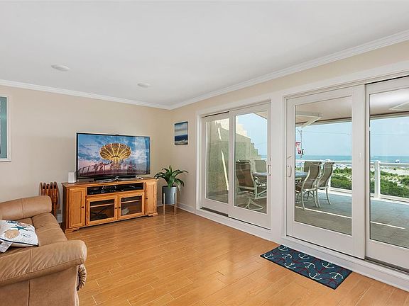 You'll be Singing "Over (not under) the Boardwalk" When You take a look at this once in a lifetime opportunity. This Oceanfront 2 Bedroom 2 Bathroom sits one story up from the Boardwalk on 18th Street in North Wildwood. The Deck is to die for. Absolutely Massive tiled deck with pavers and Troba drainage system. To give you and idea of how large this space is, it is currently holding an 8 person table With Plenty of room for Chaise Lounges or another 8 Person Table and chairs. Offering unobstructed views of the beach and Boards, this property is a true rarity. There is an $8000 fully mechanical retractable awning that covers the entire deck. The Railing is made of glass so you may maximize your views of the beach and boards while laying down. Inside you'll be delighted by an open floor plan and many upgrades including an on demand hot water system, Almost new AC unit, Stainless Steel appliances, Upgraded quiet close cabinetry, granite countertops, Subway tile backsplash and tiled baths. There are tiled floors ( That Look like Hardwoods) throughout the living area. Many recent updates include 2019 Roof Replacement, Upgrades to the bathrooms, kitchen, etc.. There is both a Master bedroom suite as well as a 2nd bedroom that utilizes the common hall Bathroom. There is 2 Car assigned parking underneath the boardwalk (unheard of). There is also a tiled lot, yes tiled. This is for the 4 Residential owners use only. There is currently a basketball court set up and a private storage shed. You are welcome to have a shed delivered as well. This Property is truly magnificent and must be visited to be truly appreciated. Please note that Best Mortgage Companies to use are local (Crest, Sturdy etc...). This is a 4 residential and 4 Commercial unit building and may not be approved through Fannie and Freddie.