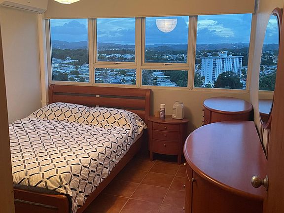 Caroline Puerto Rico. Two bedrooms, one bathroom, one parking lot, beautiful view. EQUIPPED, it has inverter air conditioning throughout the apartment (in both bedrooms and living room), stove, refrigerator, washer and dryer, microwave oven, entertainment center, large dining table with chairs, floor and table lamp, two bedside tables, queen room set, plates and cutlery... It has an ELECTRICAL PLANT, access control, 24/7 surveillance, located in front of a continuing education police station and a gas station near Walgreens and 5 minutes from Plaza Escorial mall, Plaza Carolina mall and 12 minutes from the beach. RESPONSIBLE PEOPLE! Maintenance is included in the rent. does not include water, does not include electricity, cigarettes are not smoked. The water and electricity bills arrive at the mailbox in my name, the tenant pays me both and I pay them immediately.