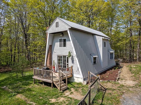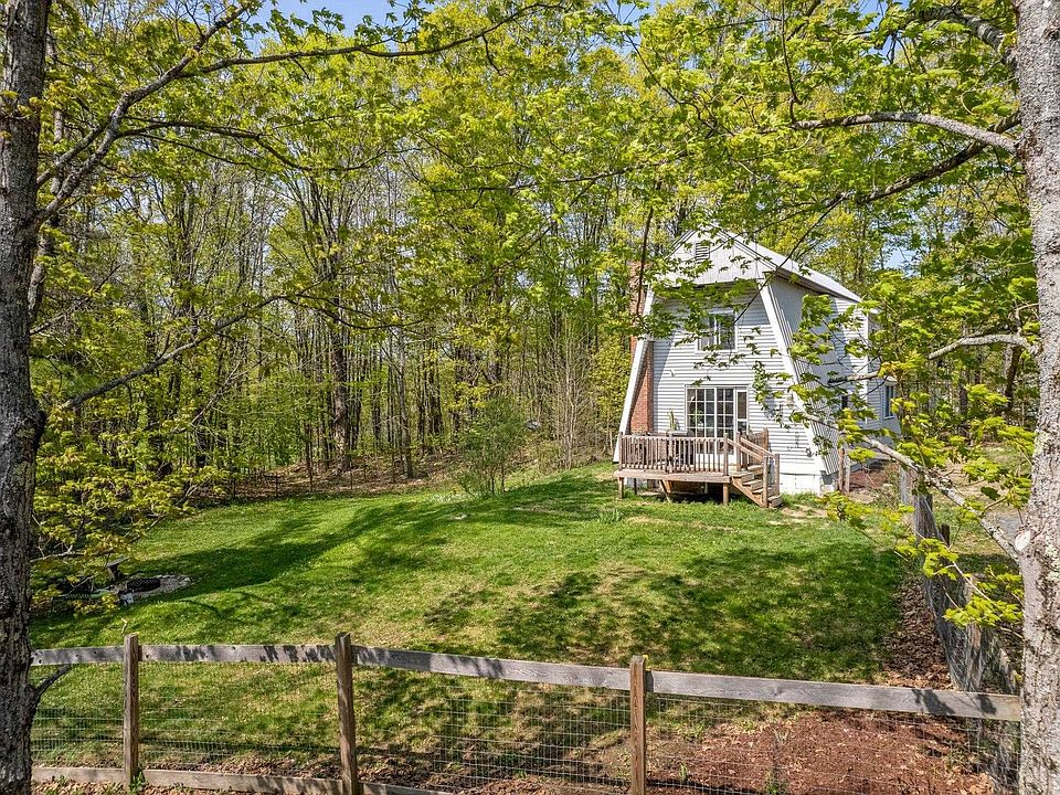 You will fall in love with the modern feel and design of this sweet A-Frame. Hidden in the Vermont landscape, this private oasis awaits. It starts as you enter the large mudroom/utility room with space for all of your outdoor gear. You then enter the fully renovated eat-in kitchen complete with walk in pantry, custom kitchen cabinets, quartz counters, new appliances including a high end gas range and hood perfect for the chef of the house. Also on the first floor, you will find the full bath and spacious living room with a slider to the deck. A great place to unwind after a busy day. From the deck you can access the fenced in yard perfect for pets or little ones while they play. The second floor has 2 bedrooms and an office/sitting area. Many recent improvements to include a new roof on the mudroom, a new foundation, vapor barrier, spray foam insulation in the basement and more... Situated on your own +/-1.12 acres with blueberry bushes and space for gardening. Only 30 minutes to DHMC, Dartmouth and all the Upper Valley has to offer.