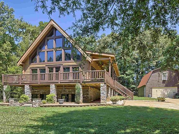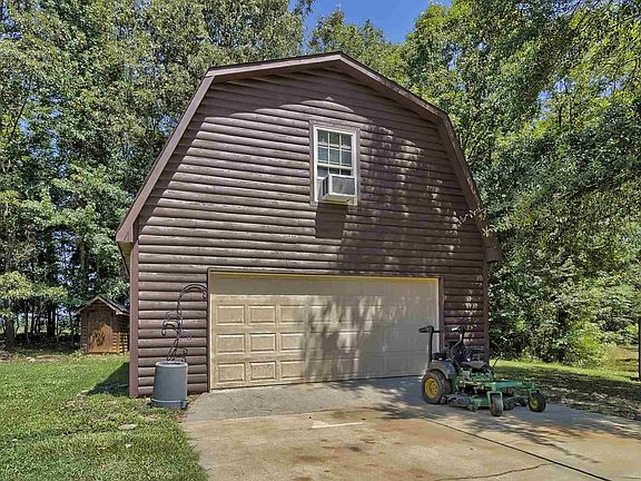 If you're looking for a custom built log home on 23 acres, 1806 Dog Leg Road in Leesville is the perfect fit. A long, private drive leads past a picturesque field and through wooded areas full of wildlife. As you turn the corner at the end of the drive, the woods open providing a stunning view of the home with an oversized detached garage. You'll find two creeks on the 23 acres, & the home placed perfectly to provide as much privacy as possible with no nearby/visible neighbors. Also offers a huge wrap around porch that is shaded in the evenings. As you enter the home, your eyes are drawn to the exposed beams & A frame design with windows from the floor to ceiling in the family room. The kitchen is open concept with granite countertops, a gas 4-burner with griddle, double oven, & plenty of storage. The owners suite is located on the main level at the back of the home complete with a "Closet Factory" custom closet & private bath. Upstairs you'll find a loft, bedroom two with custom closet & private full bath. The lower level is perfect for entertaining with a large bonus room, bar, & bedroom 3 with another custom closet & full bath. The lower level has access to a private covered patio with a beautiful stone floor. Large laundry on lower level. The detached garage features a finished heated & cooled room over. Additional features include a well with whole-home reverse osmosis water filtration & septic, no HOA or restrictions. Quality construction with 40 year roof.