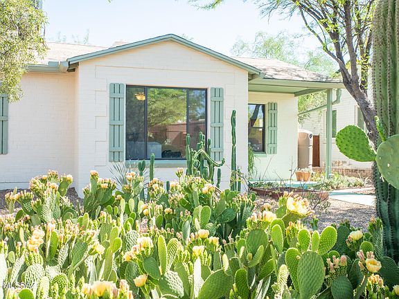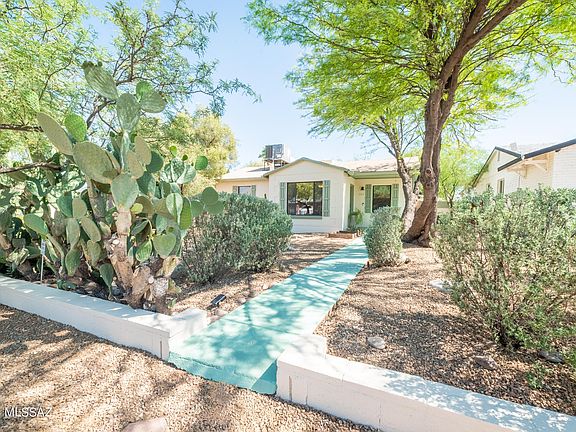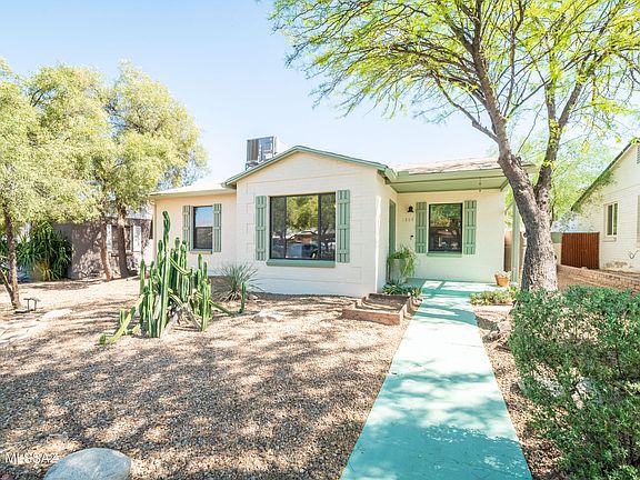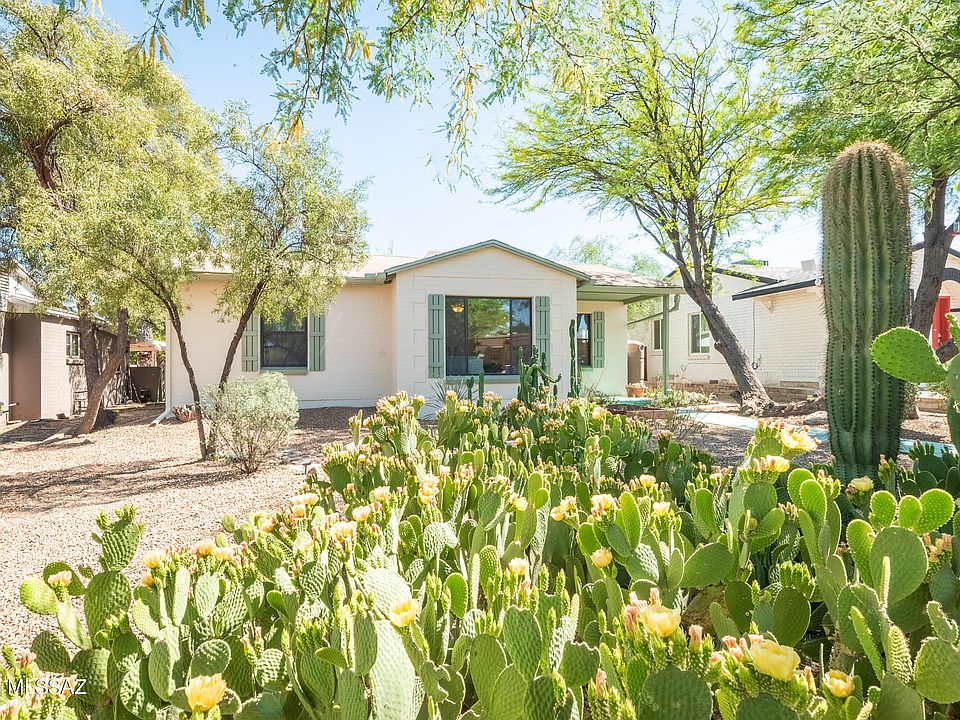Beautifully maintained 3 bedroom / 2 full bathrooms only 1 mile from UA/Banner! Large lot with lush, mature trees and low maintenance landscaping with pavers / artificial turf, carport with locked storage accessed with sliding wood gate to alleyway. Exterior newly painted 2023, HVAC unit replaced 2021, both bathrooms and fixtures remodeled 2020. All stainless appliances with granite countertops, lovely natural wood cabinetry. Rainwater harvesting (front and back) and garden beds ready! Low maintenance vinyl plank and tile throughout. Less than 1 mile from Culinary Dropout, Prep and Pastry, Flower Child, and dozens more stores and restaurants. This is an absolute must-see, as you will feel the love and care that has gone into this home! Schedule your showing today! Agent/Owner.