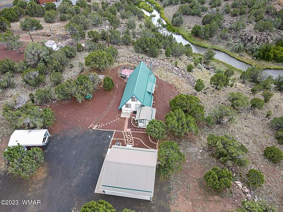 Experience the adventure of mountain living at this chalet-style cabin nestled in the breathtaking White Mountains of Arizona. This hidden gem is perched on a sprawling waterfront lot spanning a generous .96 acres along the serene Silver Creek, offering an unparalleled connection to nature's beauty. As if that weren't enough, this cabin grants you access to the private White Mountain Lake, an exclusive privilege that brings four seasons of water sports activities and angling pleasures right to your doorstep. Immerse yourself in the unique joy of waterfront living.. What sets this property apart is its distinction as the sole lake in the White Mountains that accommodates speed boating, an exhilarating feature that amplifies your aquatic adventures. For those moments of thirst and sustenance, a charming concession area stands ready to cater to your needs. Stepping inside the chalet cabin, you're greeted by an inviting open floor plan that seamlessly blends living spaces, making it a hub for gatherings and relaxation. A magnificent wall of windows unveils a panoramic view that encompasses the creek's gentle ripples and the majestic mountains beyond. With 2 bedrooms and 1.5 baths, this cabin ensures a cozy haven for both relaxation and rejuvenation. Embrace the cozy warmth exuding from the woodstove during snowy winter evenings, while the mini-split heating and cooling system ensures your comfort throughout the year. The cabin arrives fully furnished, a thoughtful touch that lets you start embracing the mountain lifestyle from day one. But the splendors don't end there. An extra treasure awaits in the form of a detached 2-car garage, a space that boasts its own heating and cooling system. Store your vehicles, gear, or embark on creative projects without worrying about temperature fluctuations. A single carport adds further convenience, providing shelter for your recreational toys and equipment. As the sun ascends over the mountains, step out onto the spacious deck that gazes over the tranquil Silver Creek. The deck becomes your personal sanctuary, a space where morning coffees and evening reflections become infused with the soothing symphony of nature. This is more than a cabin; it's a gateway to a lifestyle that merges tranquility with adventure, offering a rare opportunity to bask in the beauty of the White Mountains from the comfort of your own slice of paradise. Seize this chance to make this chalet-style cabin with incredible views your very own- a haven where memories are woven and dreams are fulfilled.