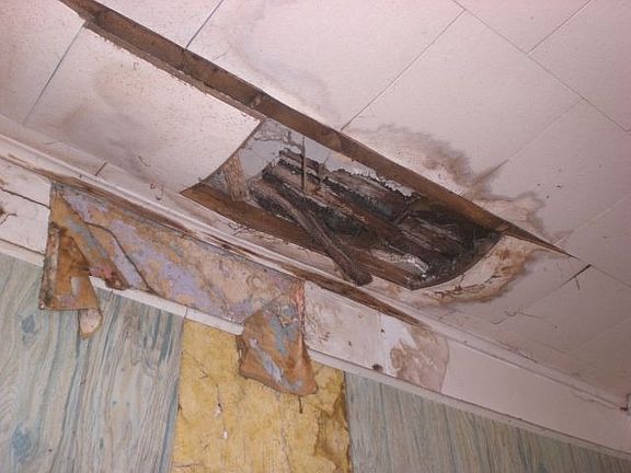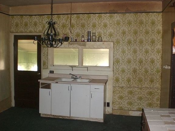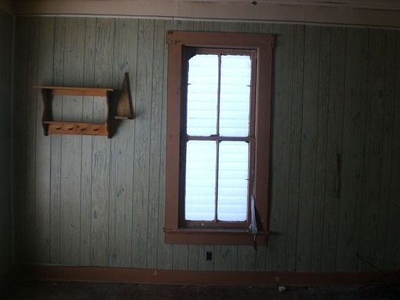 Exterior Features: Single story home, nice wooden front porch in fair condition. Yard is smaller but has been maintained. Siding: Fair condition, some repairs will be needed. Windows: Intact. Soffits and Eaves: Intact. SF: 1126 Patio/Porch: Covered front decking. Roof: Asphalt Shingle. Driveway: None. Interior Features: Please note back dining area has been filled with garbage. All other rooms are clean but repairs will be required in this home. Ceiling damage was found inside the home as well. Living Room: Carpet is in fair condition, wood panel walls look nice, and room includes ceiling fan. Dining Room: Wood panel walls, needs cleaning. Kitchen: Flooring is uneven, cabinets are intact, and sink is included. Bathroom: Tub, toilet and sink are intact. Bedroom: (2) Both bedrooms are similar in size, the first has tiled floors and wall shelving. The second is carpeted with wood panel walls. Basement: Unfinished. Mechanics: Hot Water Tank. Garage: None.