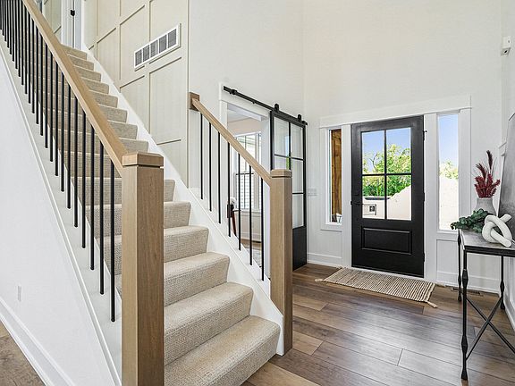 This lovely 2 story home is another beautiful Buffum home. A 4 bedroom 2.5 bath, 3-stall garage. Open concept floor plan, kitchen wrapped in gorgeous cabinetry, quartz counter tops, hood vent, large snack bar island, wood floors and stainless appliances . Adjoining dinette, spacious great room with gas fireplace, custom mantle and exterior stone, with LARGE windows. Mudroom area with built-in lockers, 1/2 bath, den and laundry on main floor. Upper floor you have a large Master with a vaulted ceiling, master bath with his/her vanity, custom walk-in tile shower, private toilet area and a large closet. 3 bedrooms and full bath.