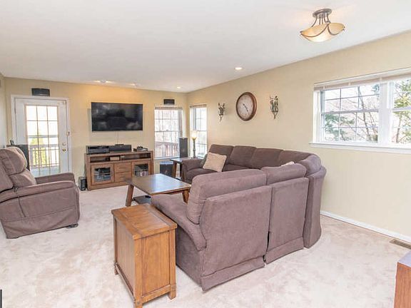 Oversized 2.5+ garage. Size suitable for contractor, landscaper, car enthusiast or a collector. New reduced price! Welcome home to this 3 BR, 2.5 Bath home in Spinnerstown Crossing. Enter into a hall and turn left into the living room flowing into the dining room. The rooms are bright and airy. The kitchen is a nice size with new counter top and backsplash. Kitchen has new stainless steel appliances and is open to a nice sized family room. Off the family room is a deck overlooking your backyard with trees for some privacy. Upstairs there are 3 bedrooms and 2 full baths. Basement is finished with sliding doors going onto the backyard. This is a great location within minutes of the turnpike for an easy commute.