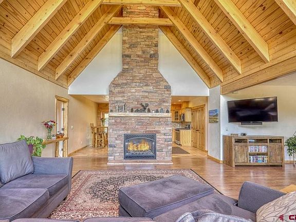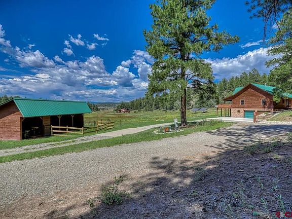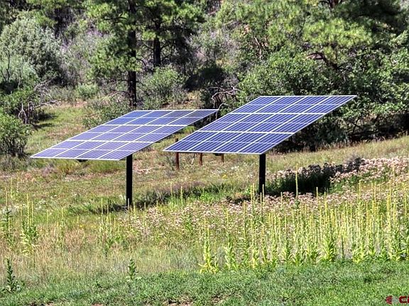 This mountain log home on five acres in Pagosa Springs’ Loma Linda neighborhood features vaulted tongue and groove ceiling with large timbers, massive windows to enjoy the mountain view, Mendota fireplace, in-floor heating, reverse osmosis water filtration, two-car attached garage, custom stamped concrete entryway, spacious covered decking and a 9.3 kilowatt photovoltaic solar system with two inverters meeting all of the home’s electrical needs. The home is also connected to the La Plata Electric grid. In addition to the generous decking, the exterior includes a 592 sf loafing shed and set posts to fence in the property for horses. Loma Linda offers homeowners private access to the National Forest and fishing at the Echo Lake State Wildlife Park is a short drive away. The recently remodeled walk-out basement is another spacious living area and dog bathing setup. Additionally, the home features city water, phone and internet service and year-round maintained roads.