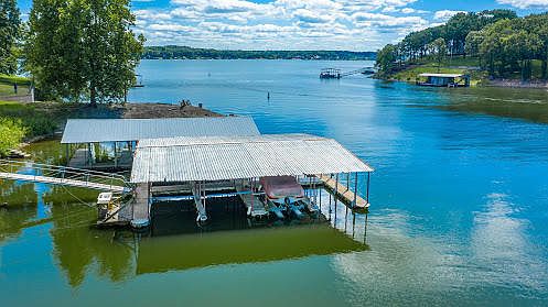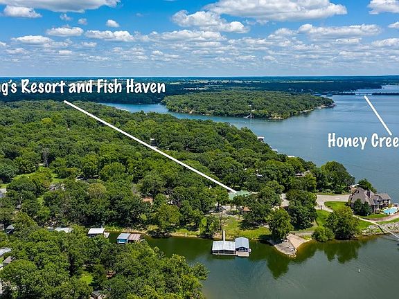 HONEY CREEK WATERFRONT, 2.2 acres, 257 Ft. of deep prime waterfront, private sandy beach & boat ramp. Property consists of a beautiful 2003 custom 2776 sq. ft. log home, vaulted ceiling, 3-4 bd, loft, 2 bonus rooms, stainless & granite in kitchen, fireplace, office, 3 cabins with lakeside deck & fabulous lake views, 8 slip dock, 7 mobile sites with potential for multiple uses, boat storage.This unique property would make a great corporate or family retreat or VBRO. A wonderful property minutes from shopping, medical .