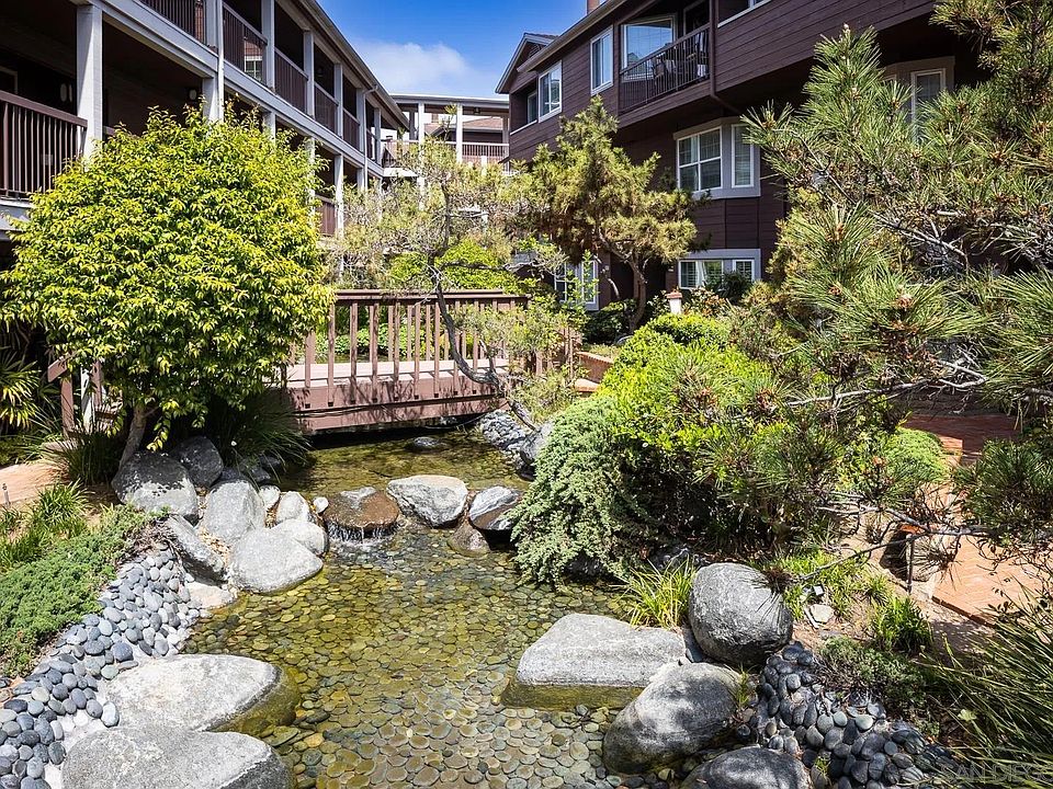 This stylish Mission Hills home comes with an ocean breeze and peekaboo views of the coast. The gated 2 BR, 2.5 BA townhome is within walking distance to restaurants, pubs, shops, and close to downtown. The grounds feature a zen garden atmosphere: a running stream, waterfalls, and lush landscaping. You will enjoy the upgraded kitchen with stainless steel appliances, the remodeled baths, newer flooring, full-sized washer and dryer, wood-burning fireplace, and 2 secured, side-by-side underground parking spaces with storage. It's a short walk to the jacuzzi from your front door!