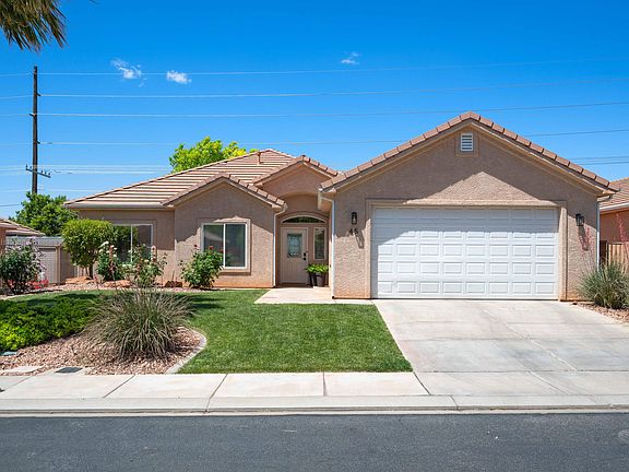 Renovated in 2020, this home features modern upgrades, including durable new flooring, quartz countertops, and fresh, neutral paint that gives the space a light and airy feel. The open-concept living area flows seamlessly into the updated kitchen, making it perfect for entertaining or everyday living. Enjoy the beautiful views while you sit in front of the gas fireplace when it cools down. Heaven! This beautifully updated 3-bedroom, 2-bath is nestled in a quiet, well-maintained community just 10 minutes from Tuacahn Amphitheatre and the red rock beauty of Snow Canyon State Park. All three bedrooms are generously sized, and the primary suite includes a walk-in closet, double vanity, and storage. The laundry room includes a sink and upper cabinets, while the kitchen has an ample pantry. Between the additional coat closet off the garage and the storage shed outside, you'll have the most organized home on the block! Step outside to enjoy a private backyard oasis with a fire pit, covered patio, and gorgeous viewsthe perfect spot for evening sunsets and s'mores. Have a green thumb? Lush rose bushes add a pop of color and charm to the property. You'll also love the community pool--ideal for relaxing and cooling off. Whether you're a first-time buyer, snowbird, or savvy investor, this property checks all the boxes for value, location, and lifestyle!