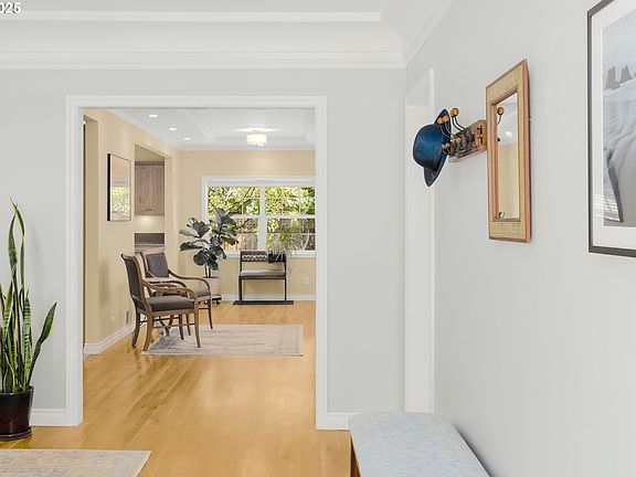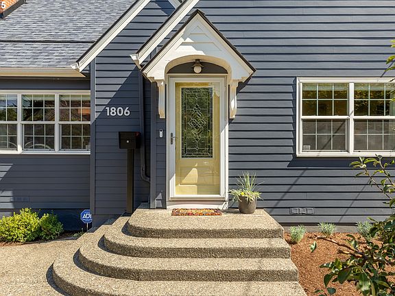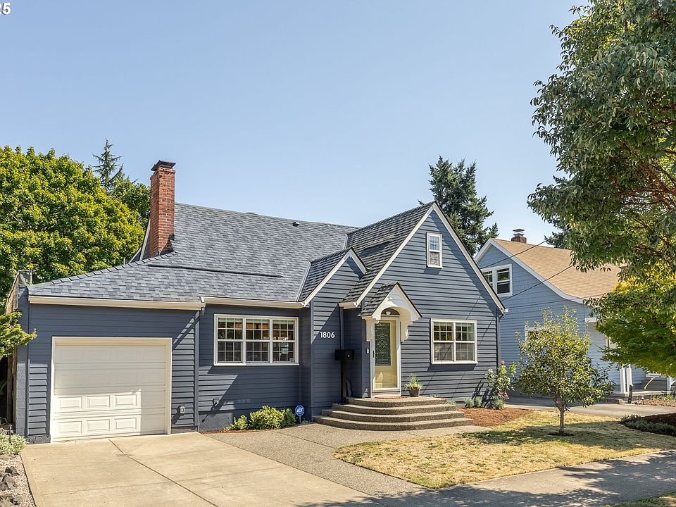 Move right into this statuesque English cottage in established Rose City Park neighborhood. Many charming details, including hardwood floors, tray ceilings and gorgeous original wood-burning fireplace in spacious dining area. Updated open kitchen features stainless steel appliances, downdraft range and cozy breakfast nook with built-in booth. Main floor bedroom adjacent to large bathroom. Light-filled landing upstairs with built-in storage leads to primary bedroom with large walk-in closet, bathroom, and third bedroom with built-in dresser and separate study alcove. Zero-VOC paint and new top-down bottom-up shades throughout. Finished basement has well-equipped laundry area with sink, folding area and lots of cabinet space, plus a large separate storage room. Seismic-retrofitted foundation. New 50-year roof (2023) includes transferrable platinum warranty. New Hardie Plank exterior lap siding (2024), electrical panel (2024), energy- efficient heat pump hot water heater (2025) and insulation (2023). Fully-fenced garden with beautiful landscaping, deck and fruit trees, plus detached bonus building for yoga or art studio, home office or gym. Walk to Normandale Park, Rose City Park and Golf Course. Two blocks to bus line, food trucks and beer garden. [Home Energy Score = 3. HES Report at https://rpt.greenbuildingregistry.com/hes/OR10203728]