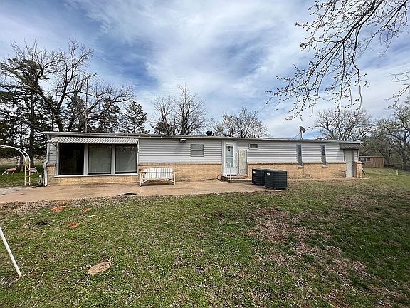 Older mobile with attached garage. Home needs work. 1500sf hobby shop with hvac and half bath. Welding shop, hay barn, equipment barn on property. 3 tracts of land equaling 22 acres, pasture and timber with running creek. Property has water, electric, well water and septic for house and hobby shop. CASH OFFERS ONLY
