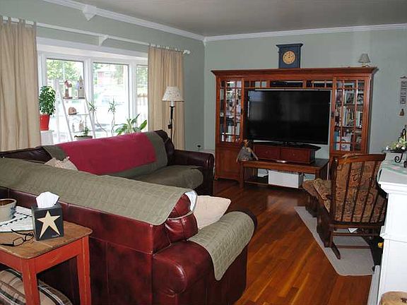 Wall size window highlights living room with hardwood floors. Galley kitchen hosts a double oven, lots of counter space and a laundry area. The great addition is the dining/family room, which overlooks private woods & hills. Single garage at entrance, rear dble garage has it's own heating "hot dawg" furnace. Lower level has game room, bonus room and furnace area, walk out to concrete patio, work shed, and beautiful landscaping. The size is surprising...all neutral, move in ready.