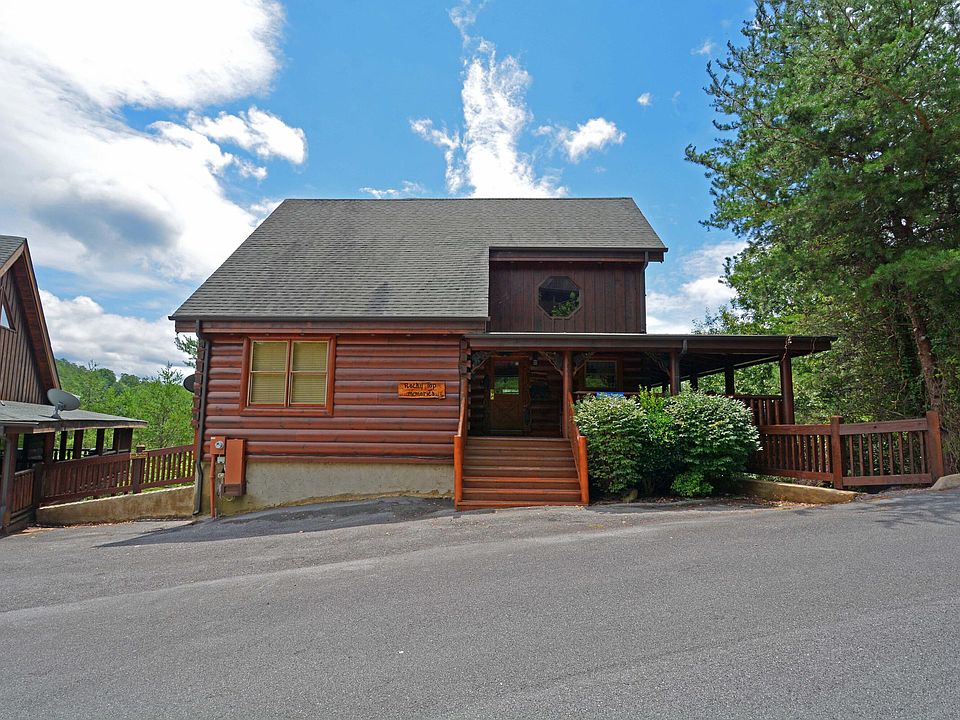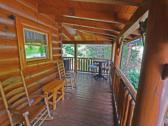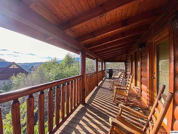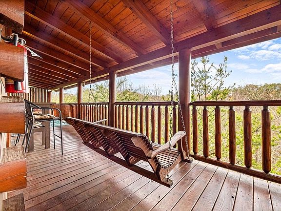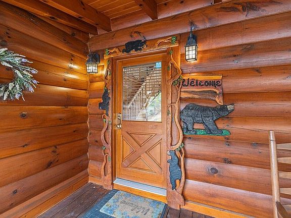 Luxury Log Cabin in Bear Creek Crossing Resort! Well-maintained cabin with excellent rental history. New granite countertops, exterior stain, nest thermostat, mattresses, and furniture in 2023. The cabin features a wonderful open floor plan, stone stacked fireplace and an impressive, vaulted ceiling. There are two king bedrooms on the main floor with two full bathrooms. The large loft includes bunk beds, a pool table & an array of games. Beautiful hardwood floors in the living room. The carpet was replaced in the bedrooms last year. Outdoors you have a wonderful wrap around porch with a fabulous porch swing, hot tub & charcoal grill. Bear Creek Crossing is a gated resort that is beautifully landscaped and offers a miniature golf course, and an indoor & outdoor swimming pool. The location is very convenient to all the area attractions, plus easy to drive paved roads. A great investment opportunity for a short-term rental property, proving excellent numbers year after year.