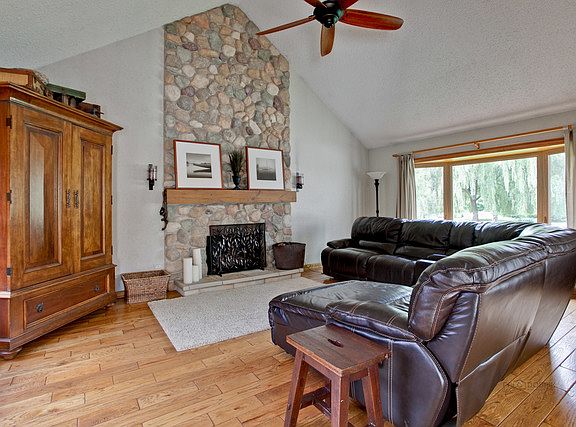 Many upgrades to well cared for home. New tear off roof w asphalt shingles, new R38 insulation in attic, New hot water tank, Mahogany front door, Cathedral ceiling with fieldstone fireplace to ceiling, bow window in LR. Anderson windows, Reverse water osmosis drinking system, 1st flr office w wood ceiling, new garage door openers, newer furnace, Led lighting, Invisble dog fence, freshly painted interior. Family room opens up to two tiered deck, additional side parking in extra large driveway. Rural living w easy access to major shopping and I90!