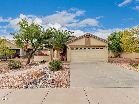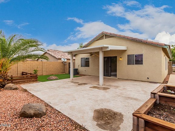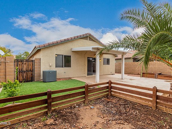 Become the proud owner of this adorable split 2 bedroom, 2 bathroom home with a den and 2 car garage! This home offers easy care landscaping & a cozy front patio. Welcoming interior includes neutral colored laminate flooring in main living areas and bedrooms, ceiling fans, and a split master floorplan. Cook your favorite meals in this spacious kitchen featuring plenty of cabinets, counter space, large pantry, and breakfast nook. Patio access from the kitchen to your private oasis backyard, complete with synthetic grass and desert landscaping for easy care, covered patio, and raised garden beds! Easy freeway access to the new 202, I10 and I17 making this home convenient to travel around the valley. Book your tour now!