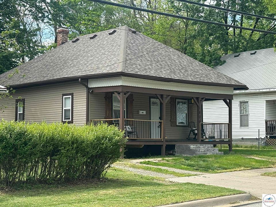 Bungalow Charmer!! Stop paying rent and own your very own home! This wonderful 2 bed 1 full bath home has everything you need. It was completely rehabbed in summer of 2021 to include: New paint throughout, new carpet, and new vinyl plank floors in Kitchen and fully remodeled Bathroom, new vinyl siding and guttering, and mostly newer windows. Kitchen has beautiful painted wood cabinets including pantry space, granite counter tops, a white subway tile backsplash, and BONUS: refrigerator stays! Updated bathroom incudes a large tiled shower, granite counter, & large bathroom vanity cabinet, plank flooring, and a stackable washer and dryer that stays as well! A new roof was just installed in 2023 making this house move in ready! Enjoy your pride of ownership while enjoying your covered front porch or back deck and very own yard! *All Measurements are approximate. Buyers are recommended and encouraged to verify on their own*