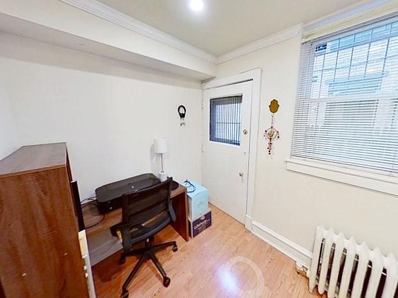 Large One bedroom + small office/den. New marble bath, new open kitchen with eating bar, d/w, w/d. g/d. Hardwood floors. Central air/heat