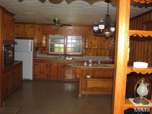 The older home features hardwood floors and lots of wood paneling. Kitchen/dining combo offers the best for family living. Refrigerator is new. Roof is less than 5 years old and outside is vinyl with single, attached garage. Sunroom on the side of the house offers a variety of uses. The utility room features a shower and lavatory as well as a washer and dryer. The garage opens to the road and to the back of the house with garage doors on both sides. Paved walkway in front. Good size lot (over .5 acre) with large workshop and several smaller outbuildings.