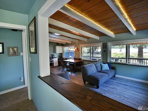 Enjoy 100+ feet of beautiful Sunday Lake waterfront, spectacular views, beautiful sunrises and sunsets from this charming 1942 cabin. Completely updated one story cabin is and ready for you to move in and relax. Incredible landscaping, lots of parking for guests, even room for an RV and the perfect location only minutes to the freeway. What are you waiting for? Truly a slice of Paradise! Adjoining 5+ acres also available MLS# Do not enter property with out agent and appointment.