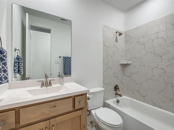 Beautiful Highland Home in the amazing M3 Ranch community. Extended entry highlights 12-foot coffered ceiling. Home office with French doors set at entry. Dining area flows into open family room with a wood mantel fireplace and wall of windows. Open kitchen offers extra counter space, corner walk-in pantry and generous island with built-in seating space. Spacious Primary suite. Double doors lead to primary bath with dual vanities, garden tub, separate glass-enclosed shower and two walk-in closets. Private guest suite with full bathroom and walk-in closet. All bedrooms include walk-in closets. Covered backyard patio. Plantation shutters, Refrigerator, washer, dryer included!! 2024-09-26