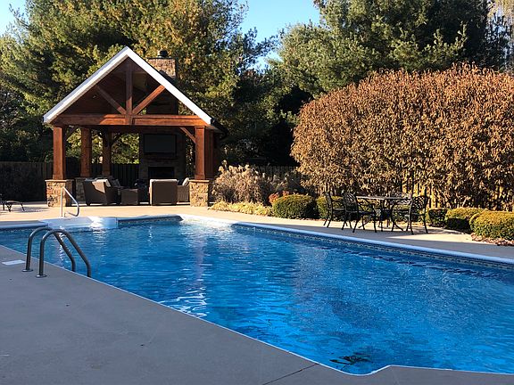 Beautiful home, hardwood downstairs, private fenced back yard with swimming pool and large decking. Circular drive, irrigation system, pool heater, and salt water pool. Oversized detached garage, bar and grill area, outdoor stone fireplace with covered pavilion. House has 3 fireplaces. New roof will be included in purchase price.\ 5,875 Square feet total. 4,785 Total in house. Approximately 1,000 additional living area above detached garage.