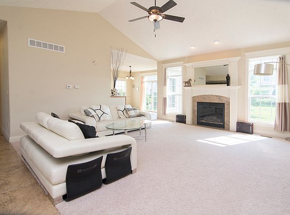 Featuring quality construction by Ironwood Homes, this house features Pella windows & exterior doors & an upgraded high-efficiency Trane furnace & a/c with whole-house humidifier. The combination of steep roof pitch, significant brick coverage, & the side-load garage make for elegant curb appeal that is not dominated by garage. The front door opens into a bright, open living concept with a great room with cathedral ceiling that flows seamlessly into the front formal dining room--delineated by decorative fluted columns, the kitchen, & the casual dining area that overlooks the backyard. The kitchen features oversize ceramic tile flooring, substantial raised panel cabinets with crown molding detail, granite counters & a full complement of stainless steel appliances. See 3D tour & HD photos!