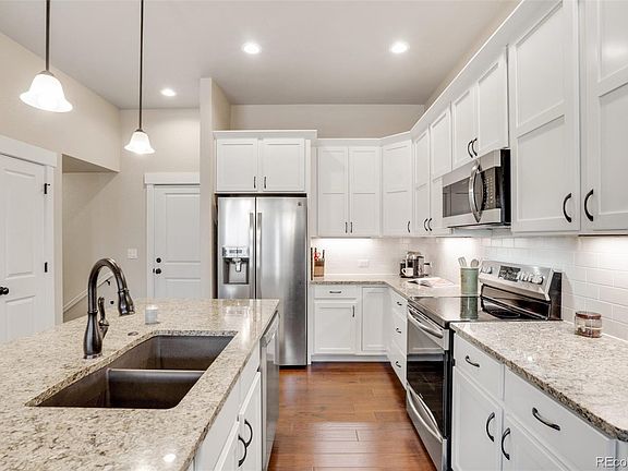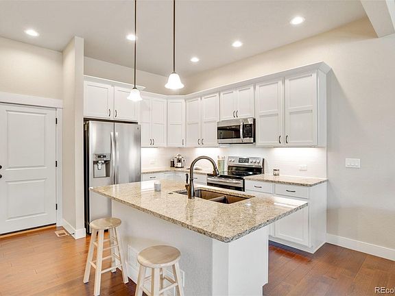 Beautiful Landmark townhome located in desirable Kendall Brook. This two bed, three bath home features an open floor plan, loads of luxury upgrades throughout, you don't want to miss out on this one! Kitchen has white cabinet, granite countertops, subway tile backsplash with engineered hardwood leading through dining and living room. Island is extended with extra room to entertain. Large bedrooms featuring their own walk in closets and luxury baths. Low maintenance. HOA includes snow removal, exterior maintenance, exterior insurance, basic cable and internet. Facing the courtyard with plenty of green space to play and entertain. Enjoy evening walks along the foothills and mountain views.
