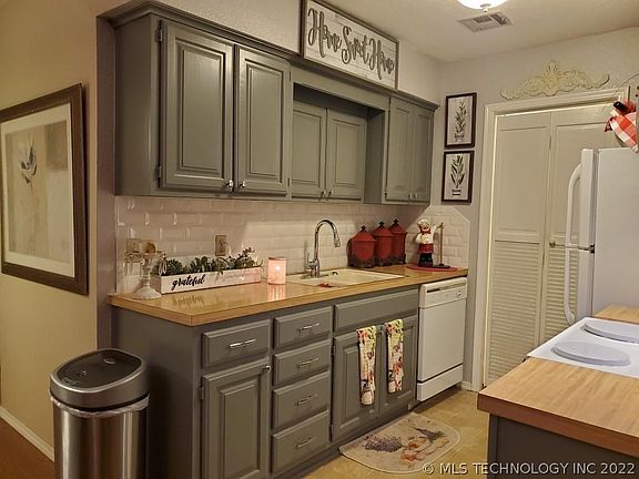 Cute bungalow in Jenks Schools. This home offers new interior paint, new carpet, newly remodeled kitchen, laminate floors in living room, and a small deck off of the master bedroom. Open concept with vaulted ceilings and cozy fireplace. Easy highway access and close to Tulsa Hills. Hurry before it's gone!