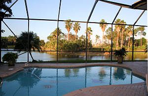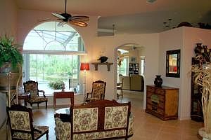 Relax and enjoy the million dollar views of lake, golf and pool from all rooms in this fabulous home. Some of the many upgrades include: crown molding, French doors, tile on the diagonal, walk-in closets, designer lighting, granite countertops, granite window sills, matching custom granite dining table and granite pedestal stay, custom cabinetry in family room stays, cook island, under and over cabinet accent lighting, upgraded appliances, A/C with UV light and purifier air filter replaced 2009, new garbage disposal, accordion shutters on back windows and more. Located in non-equity golf community with resort style clubhouse, heated pool and hot tub, basketball, tennis, playground, exercise facilities and kiddie pool. Close to schools, shopping and entertainment. Washer/dryer do not convey